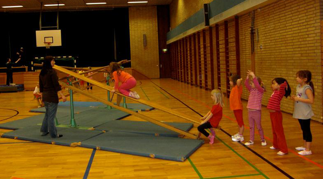 Nach einem gemeinsamen Aufwärmspiel wird die Gruppe in altersgemäße Kleingruppen aufgeteilt. So kann jede Kleingruppe je nach Leistungsstand und motorischer Entwicklung für sich Fortschritte machen. So werden sowohl 5- bis 7-Jährige bzw. 8- bis 10-Jährige als auch die Älteren ab 10 Jahren individuell gefördert, ohne dass jemand unter- bzw. überfordert wird.